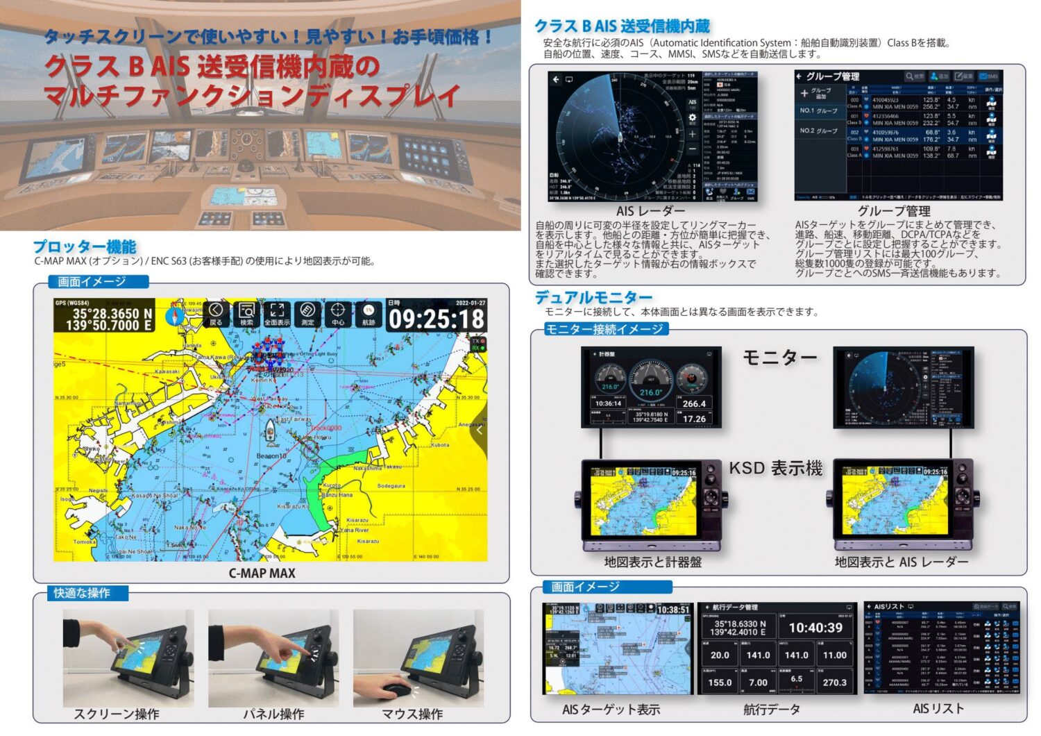 自船の位置情報を送信し、他船の情報を受信する衝突防止の要となる装置です。 - KODEN KSD-1100 / 1210(カラー液晶チャートプロッター)
